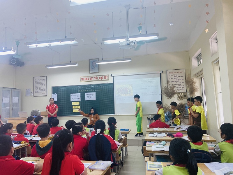 Ngày 3/11/2022 cô giáo Hoàng Thanh Huệ và các bạn học sinh lớp 4A3 có 1 tiết chuyên đề lịch sử phát huy năng lực học sinh hiệu quả. Trong tiết học giáo viên đã ứng dụng tốt công nghệ thông tin trong dạy học thu hút học sinh vào các hoạt động của tiết học. Các bạn học sinh lớp 4A3 cũng có nhiều sáng tạo trong việc thuyết trình bằng sơ đồ tư duy, đóng hoạt cảnh lịch sử trước lớp. Tiết học được BGH và các đồng nghiệp trong khối đánh giá cao. Sau đây là một số hình ảnh của tiết học.