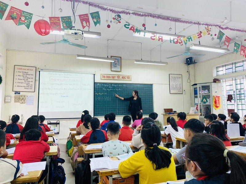 Cô giáo Nguyễn Thị Anh đã tổ chức cho học sinh chơi trò chơi khởi động, nhắc lại kiến thức bài trước.