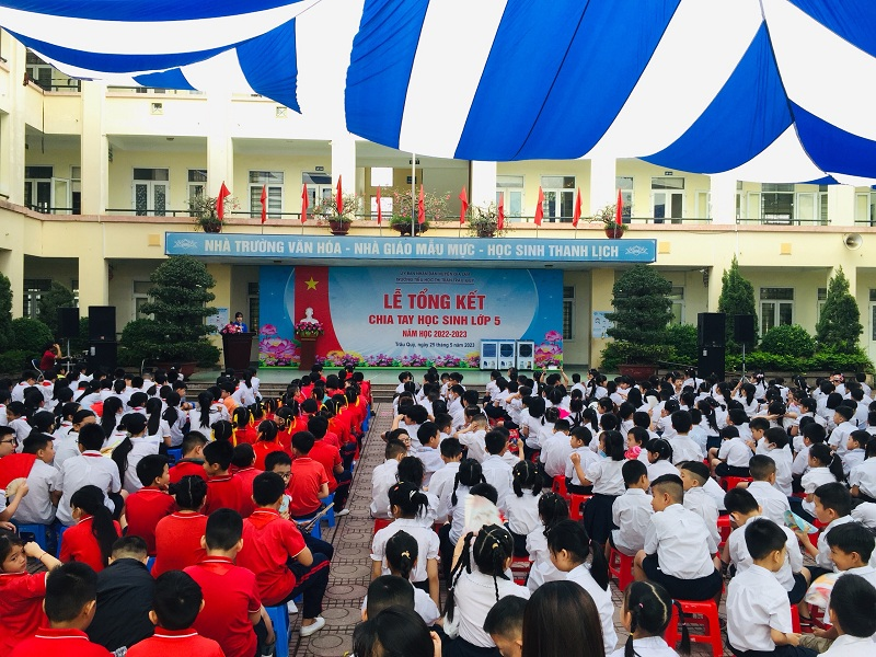 Để ghi nhận đánh giá kết quả đạt được đồng thời tuyên dương khen thưởng các cá nhân đạt thành tích xuất sắc của các con học sinh trong năm học qua, sáng ngày 25 tháng 05 năm 2023 trường Tiểu học Thị trấn Trâu Quỳ long trọng tổ chức Lễ tổng kết năm học 2022 – 2023.