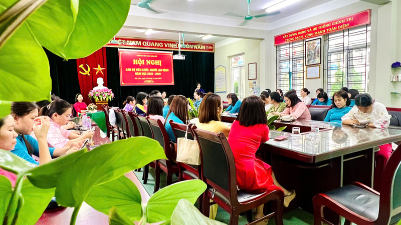 Hội nghị được tổ chức nhằm đánh giá kết quả thực hiện nhiệm vụ năm học 2024–2025, đồng thời đề ra phương hướng, nhiệm vụ trọng tâm cho năm học mới. Dưới sự điều hành của Đoàn Chủ tịch gồm cô Nguyễn Thị Hiền – Bí thư Chi bộ, Hiệu trưởng; cô Lương Thị Nhung – Phó Hiệu trưởng; và cô Đỗ Thị Ngọc Ánh – đại diện giáo viên, hội nghị đã diễn ra nghiêm túc, dân chủ và sôi nổi với sự tham dự của toàn thể cán bộ, giáo viên, nhân viên nhà trường.