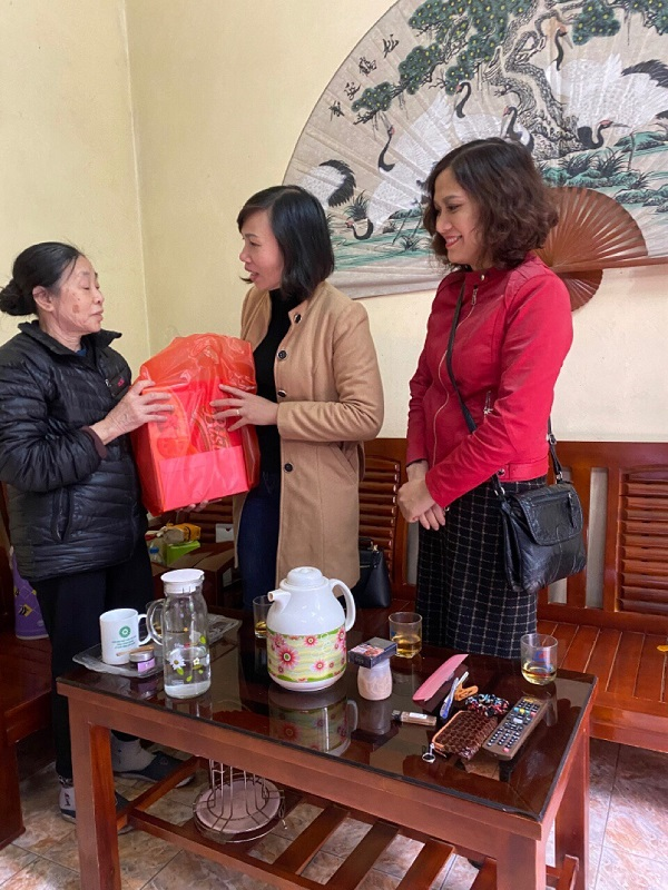 Đ/c Đỗ Thị Ngọc Ánh, Đ/c Trần Thị Hạnh - BCH công đoàn tặng quà và chúc tết gia đình chính sách