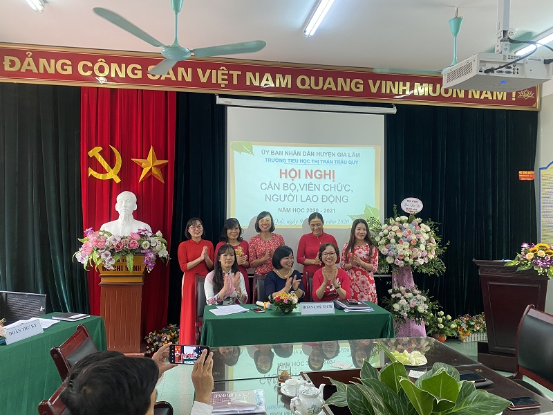 Thực hiện hướng dẫn số 13/HD-UBND-LĐLD của Ủy ban nhân dân - Liên đoàn Lao động huyện Gia Lâm và công văn số 276/GD&ĐT của Phòng GD&ĐT huyện Gia Lâm về việc tổ chức hội nghị CB,VC, NLĐ năm học 2020-2021 trong các đơn vị trường học, được sự chỉ đạo của Chi bộ nhà trường, ngày 8/10/2020, Ban Giám hiệu cùng với Ban chấp hành Công đoàn trường Tiểu học Thị trấn Trâu Quỳ đã tổ chức Hội nghị Công chức, viên chức và người lao động năm học 2020 -2021 nhằm kiểm điểm, đánh giá việc thực hiện Nghị quyết hội nghị đề ra trong năm học 2019-2020, xây dựng và bàn biện pháp thực hiện kế hoạch năm học 2020-2021.