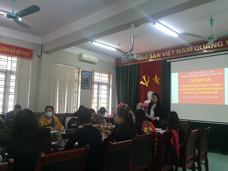 Thực hiện công văn số 58/GD$ĐT ngày 25/2/2020 của PGD huyện Gia Lâm. 8h sáng thứ 5 ngày 27/2/2020 trường TH TT Trâu Quỳ tập huấn cho CG, GV, CNV tình hình dịch bệnh và biện pháp phòng, chống dịch bệnh Covid-19 tại trường học trước khi đón học sinh trở lại trường học.