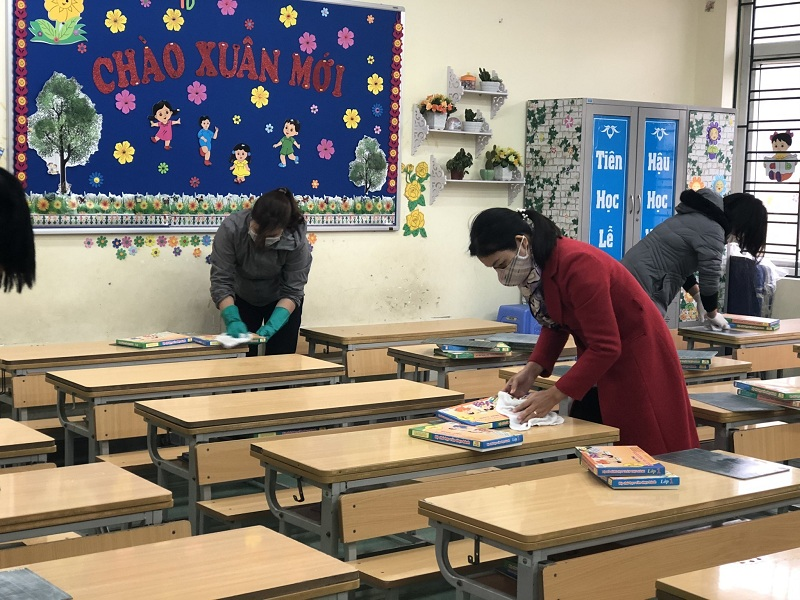 Bàn ghế học sinh đều được lau và khử trùng sạch sẽ